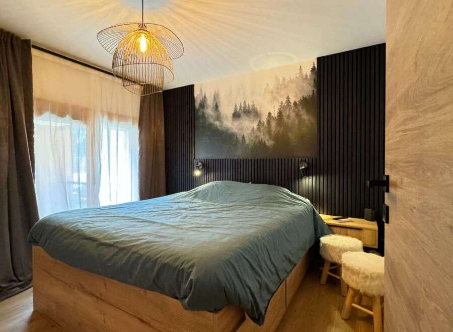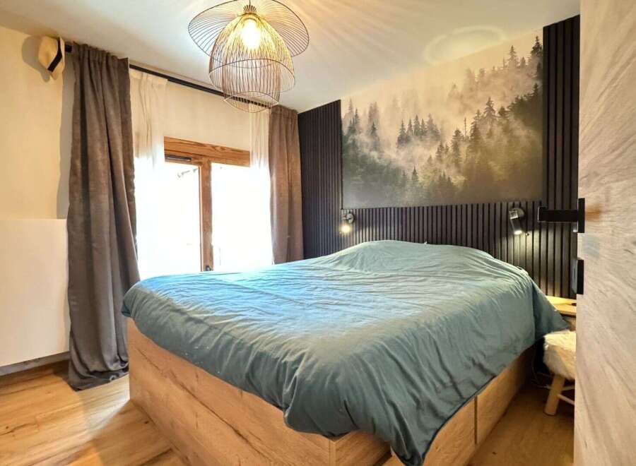 Located in the heart of the Domaine de l'Ariondaz in Courchevel Moriond, this elegant ski-in ski-out apartment enjoys an exceptional location, ideal for making the most of your mountain holidays. It features an entrance hall, a bright living room with a lounge area and dining area, extended by a terrace offering panoramic views of the mountains, and a fully equipped open-plan kitchen. The sleeping area comprises a comfortable double bedroom and a cabin bedroom with bunk beds, perfect for accommo...