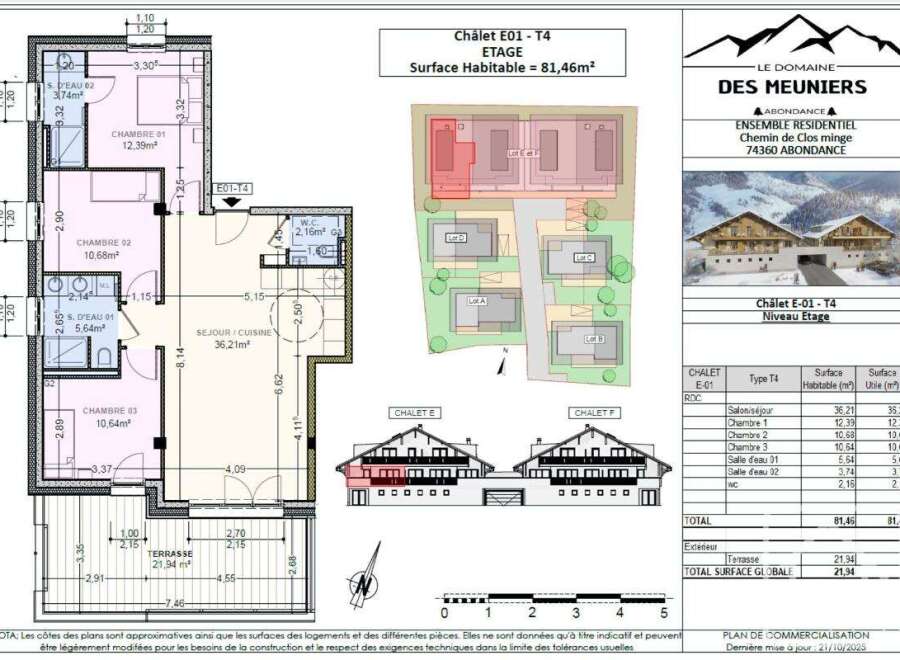 Le Domaine des Meuniers is a project of four high quality five bedroom chalets and two small apartment buildings to be built in the pretty hamlet of Richebourg, between Abondance and La Chapelle d'Abondance. The apartments will be delivered key in hand, including fully equipped kitchen, and will of course respect all the latest energy efficiency regulations. There are two T4 apartments available; **Appt E01**, 81.46 sq m habitable with a 21.94 sq m terrace, 462.000 € including parking space a...