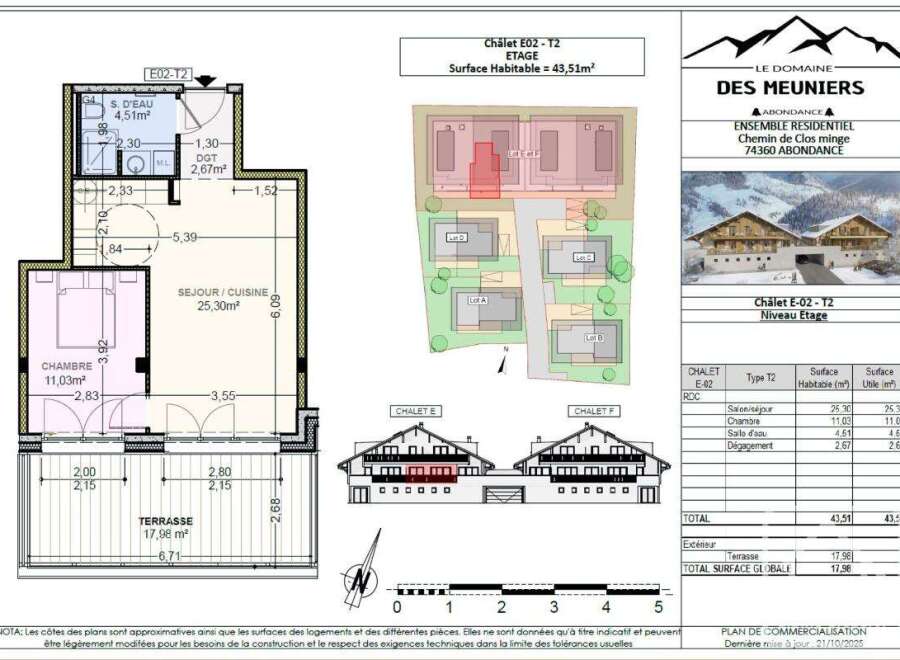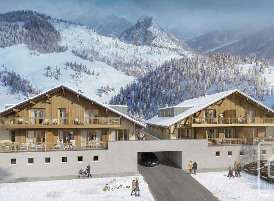 Le Domaine des Meuniers is a project of four high quality five bedroom chalets and two small apartment buildings to be built in the pretty hamlet of Richebourg, between Abondance and La Chapelle d'Abondance. The apartments will be delivered key in hand, including fully equipped kitchens, and will of course respect all the latest energy efficiency regulations. There are two T2 apartments available; **Appt E02**, 43.63 sq m habitable with a 17.98 sq m terrace, 265.000 € including parking space ...