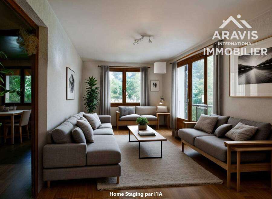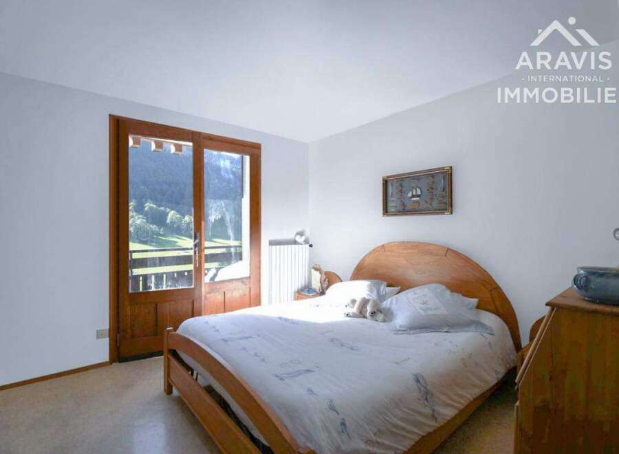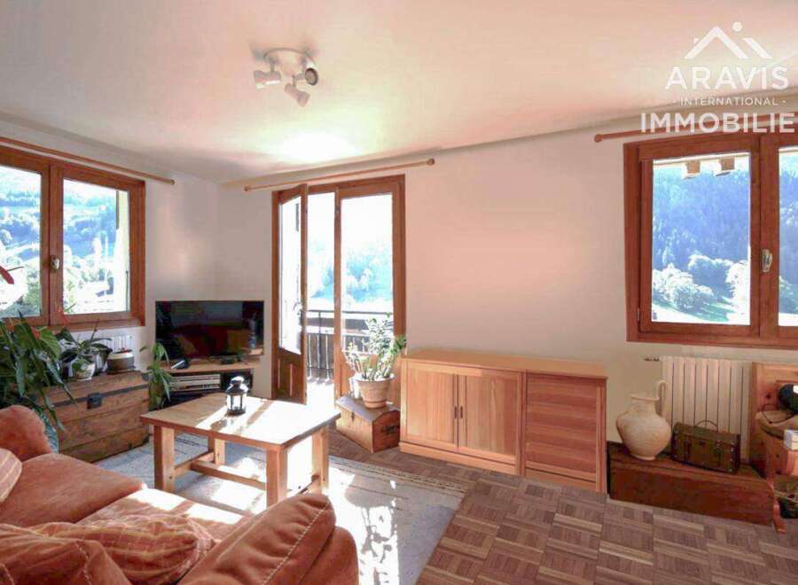 Located in the Confins valley, 1.5km from the village center, this 76m2 apartment features 3 bright bedrooms, two of which have direct access to the balcony, a separate kitchen, a living room with double exposure to the south and east, a bathroom and separate toilet. The south-facing balcony enjoys a superb view of the Aravis mountains. Great renovation potential. Co-ownership of 3 main lots with voluntary trustee. Garage not included (EUR20,000). Virtual visit on request. Posted price includi...