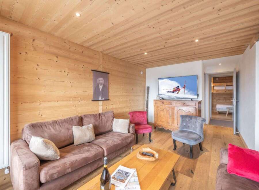 Welcome to the Edelweiss Apartment, a true family haven of 109.41 m2, located on the first floor of a charming alpine chalet in Alpe d'Huez. From the moment you step inside, you'll be captivated by the warm and authentic atmosphere, enhanced by light wood accents that create a cozy and inviting setting. The bright living room, opening onto a convivial dining area and a fully equipped kitchen, is perfect for sharing unforgettable moments with family or friends after a day on the slopes. The apart...