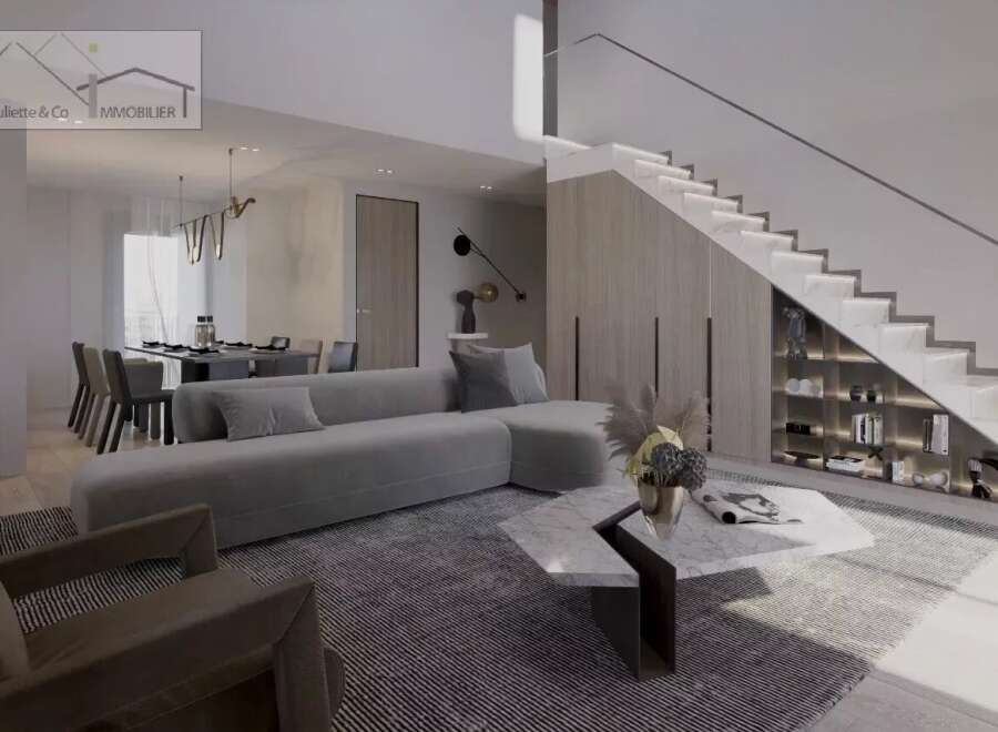 A four-bedroom duplex apartment located in Le Fayet, in a new building. The apartment occupies the top floors and measures approx. 94.16m2, comprising on the first level an entrance hall with storage space, a kitchen opening onto the living room with access to two balconies, a bathroom and a bedroom with balcony, a second bedroom, and upstairs two bedrooms and a bathroom with toilet. Annex: cellar and outdoor parking space. Basement garage available. Close to the new ski lift to Saint-Gervais.