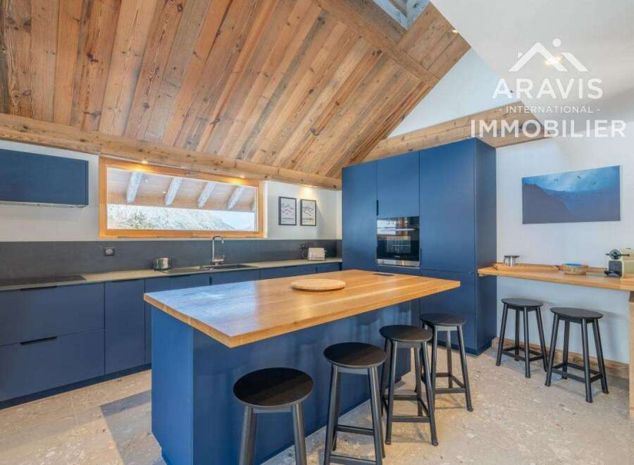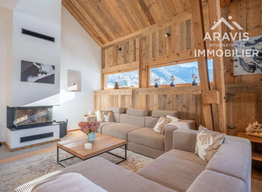 Just 5 km from the Grand-Bornand ski areas and 7 km from La Clusaz, your Aravis International agency offers you this magnificent apartment of almost 200m2 in a quiet area of the village of Entremont. This apartment with high-end services has a large living room with fireplace, a large fully equipped kitchen with its pantry. This beautiful and bright living room opens onto a large sheltered terrace of 30m2. 5 bedrooms with their private shower room, a cinema area and a laundry room/ski room compl...
