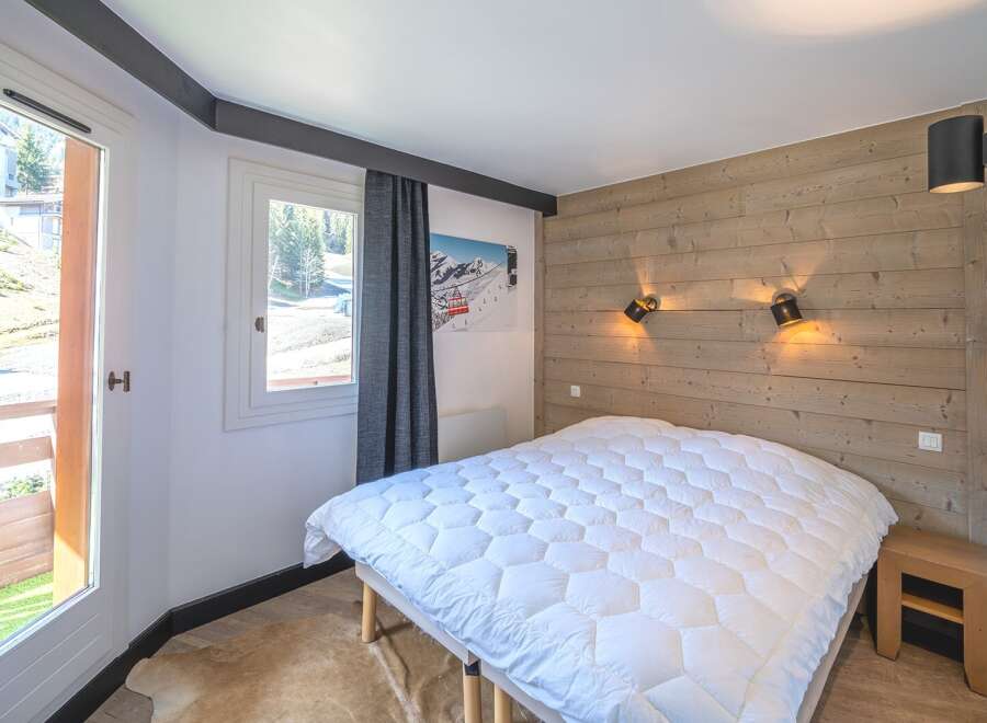 Discover this beautifully renovated 47.91 sqm apartment in La Tania, ideally located at the heart of the ski resort, offering direct access to the slopes just steps away from your door. The apartment is designed for both comfort and convenience, featuring two bedrooms, including a cozy cabin with bunk beds, perfect for accommodating family and friends. The spacious living room, with its fully equipped kitchen, opens directly onto a south-facing balcony, where you can enjoy breathtaking views of ...