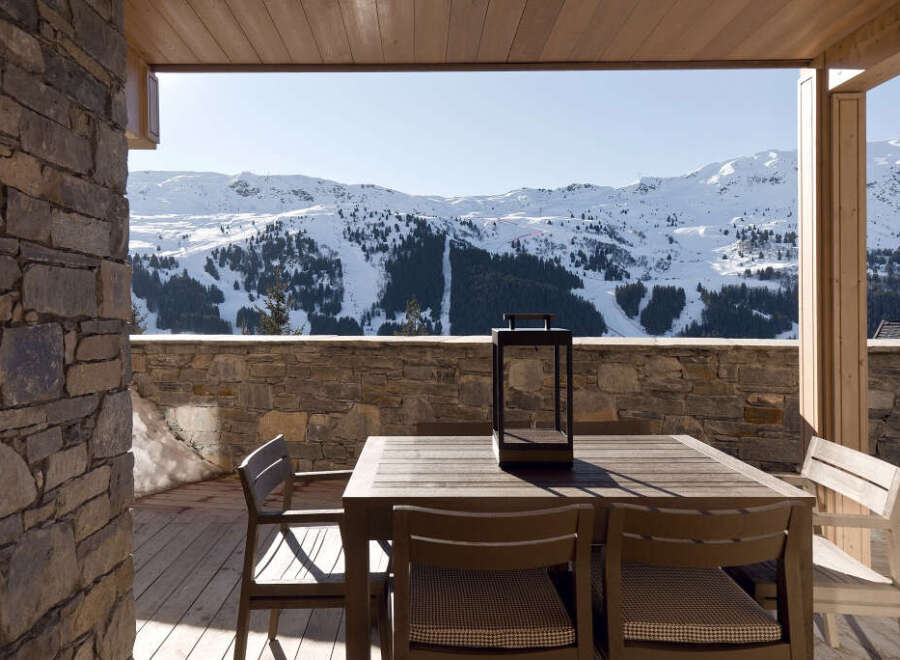 Located in a recent ski-in/ski-out residence, come and visit this exceptional apartment. It comprises a master bedroom with an en-suite wardrobe opening onto a terrace, a double bedroom, a bathroom, and a splendid double living room with a dining area and a fully equipped kitchen. You will appreciate its unobstructed views and abundant sunshine from its terrace of over 80 sqm. The apartment is sold fully furnished with a ski locker and a covered parking space. Energy Performance Certificate: D