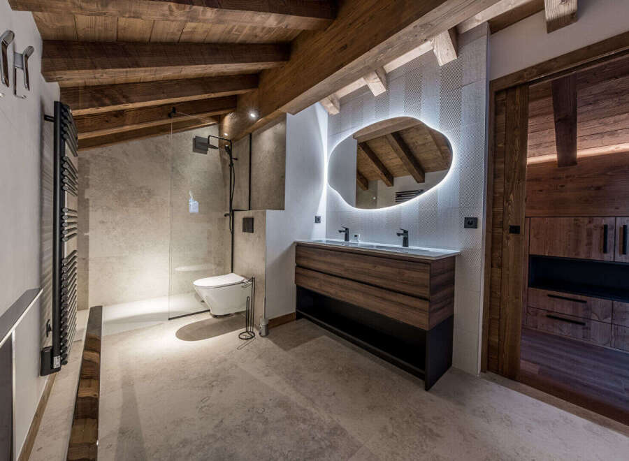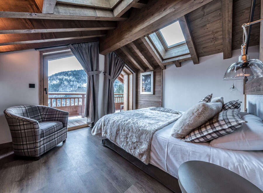 Located within a chalet boasting contemporary Alpine architecture, this apartment offers a warm and perfectly executed atmosphere. The living area, with its exposed beams, features a lounge and an open-plan kitchen with clean lines, extending onto balconies with unobstructed mountain views. The combination of solid wood and mineral finishes creates a harmonious and luminous space. The sleeping area comprises two bedrooms, each with a well-appointed bathroom. The layout is well-balanced, with int...