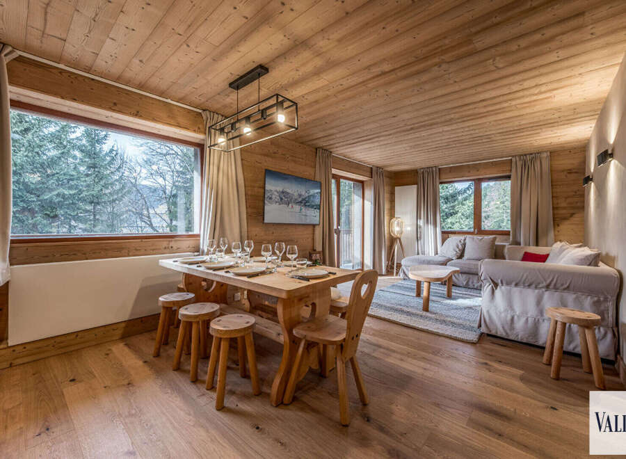 Located in a highly sought-after ski-in/ski-out residence, this spacious, fully renovated corner apartment boasts generous living areas. It comprises a bright, dual-aspect living room, sleeps 8, and offers ample storage. You'll also appreciate its tranquility and panoramic mountain views. Enjoy afternoon sunshine thanks to the west-facing balcony. The apartment is sold with a cellar and a ski locker. Energy Performance Certificate: F Condominiums of 34 units (No proceedings in progress). Annual ...