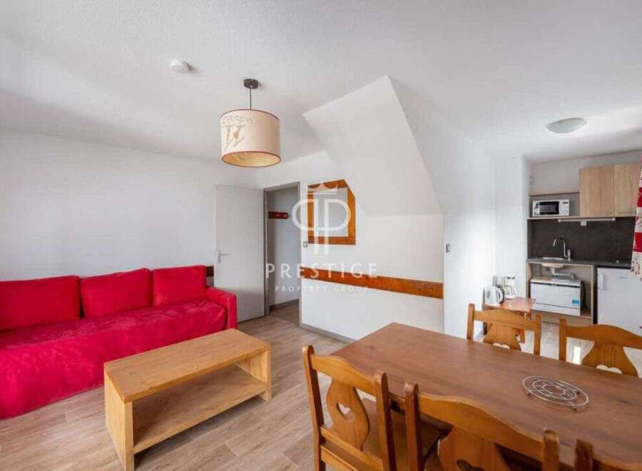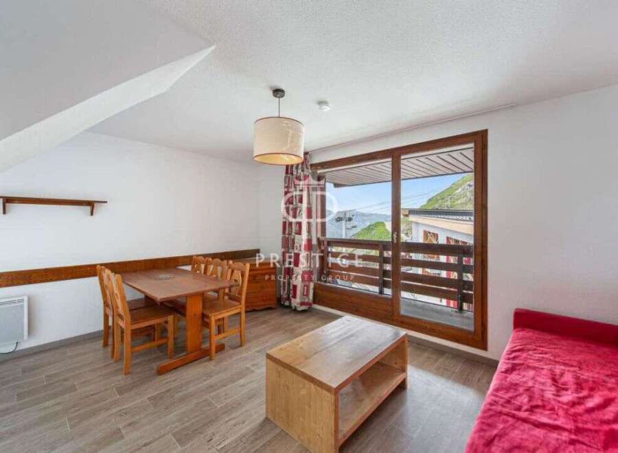 Inviting duplex apartment, situated in a privileged location in the heart of Val Thorens skiing resort and with lovely mountain views.Set on the top floors of the residence, features include on the entrance level: entrance hall with storage space, a separate WC and a bright living room with a fully equipped kitchenette and access onto a balcony. Upstairs: comfortable bedroom offering a quiet space and a modern bathroom.The property is sold with a ski locker and is close to the shops and ski slop...
