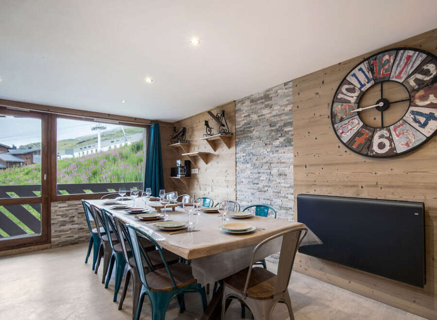 Located in the heart of Val Thorens, this west-facing 94 sq.m apartment with six bedrooms (4 doubles + 2 cabines) enjoys a prime position with skiing on foot and true ski-in/ski-out access. Fully refurbished, it offers a rare combination of generous volumes, refined finishes, and immediate access to the slopes, making it ideal for both family use and rental performance.The interior has been thoughtfully redesigned to balance comfort and elegance. A bright open-plan kitchen and living area forms ...