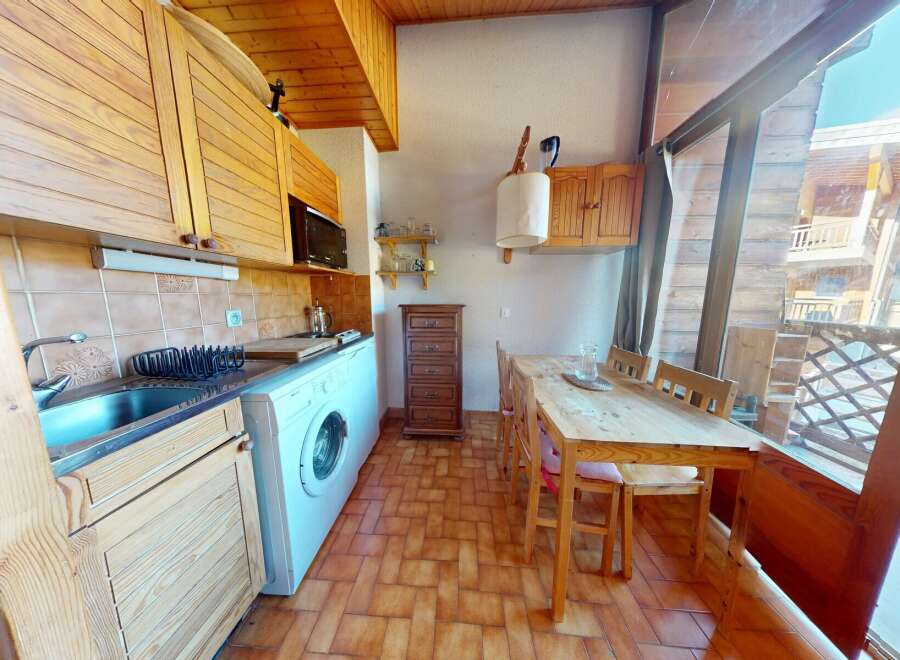 Apartment Bois de Lune is a studio apartment located in the sunny La Turche area of Les Gets. This top-floor studio apartment features an open-plan living area, a partitioned bedroom, a bathroom and a separate WC. There is an east-facing balcony accessed directly from the lounge which is large enough for outdoor dining. The apartment has a ski cave and private covered parking. The Turche area of Les Gets has excellent access to the ski slopes of Les Perrières and Les Chavannes. As well as bein...