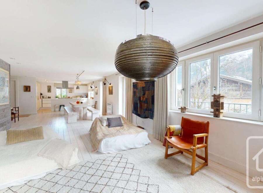 In the heart of Les Houches village and mountain resort, this beautiful duplex apartment occupies the two uppermost floors of a lovingly restored, fully renovated 19th Century Savoyard farmhouse. The south-facing balcony and large windows draw your gaze outward to one of the most iconic panoramas in the Alps, with every season telling a new story. Whether in the quiet glow of morning or the soft warmth of late afternoon sun, every space has been thoughtfully created by its architect-owner and r...