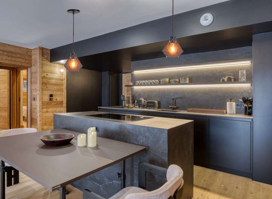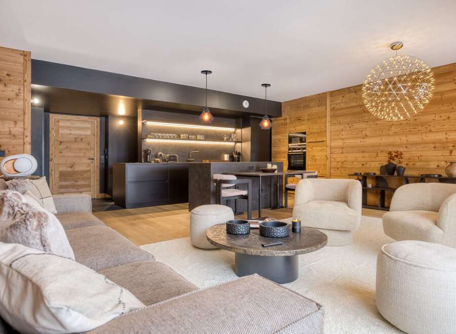 The new KALISTA development blends seamlessly into the snow front of the Jaillet hamlet, offering a preserved setting and an ideal location: just 300 meters from the Sports Center and a 6-minute walk from Megève’s pedestrian center. Among its three chalets, Chalet C stands out for its peaceful and privileged location. Situated on the ground floor, this 100 m2 apartment, delivered in December 2023, benefits from optimal natural light and an open view. Living Area: An open and fully equipped kitch...