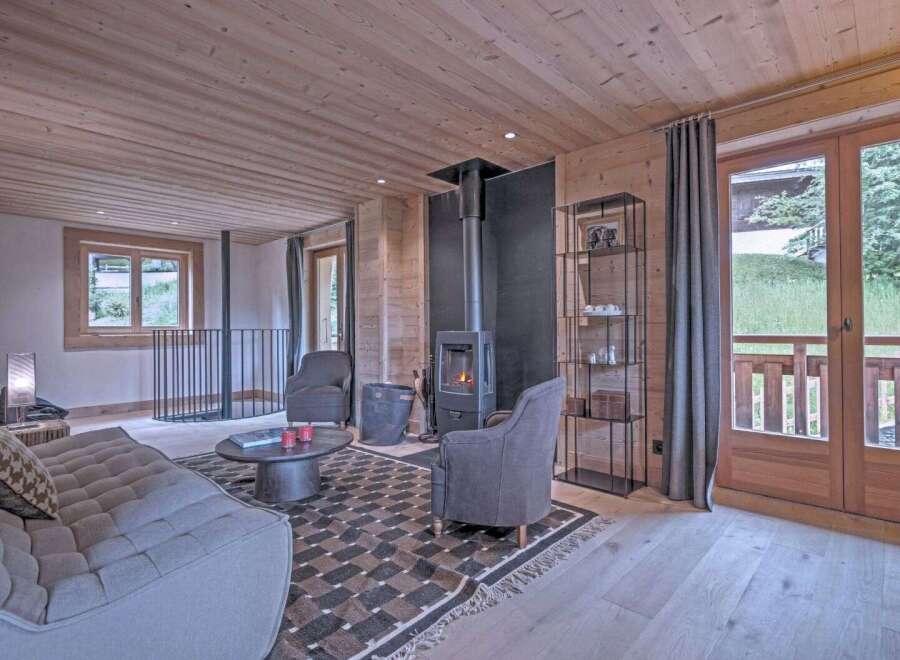 Occupying the entire first floor of a traditional chalet comprising only two units, this apartment of 142.42 m2 (Carrez Law) enjoys a prime location, offering peace and privacy just a short walk from the village center of Megève and the Rochebrune cable car. The apartment features an entrance leading to a semi-open equipped kitchen, a living room with fireplace, a lounge area with wood-burning stove, three bedrooms, a bathroom, a shower room, and a second entrance with direct access from the pri...