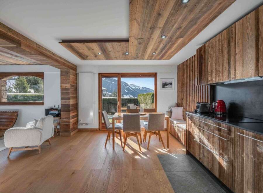 Sublime apartment T4 entirely renovated with a total surface area of 85 m2 including 83.79 m2 loi carrez located on the ground floor of a charming condominium on the popular and sought after area of Mont d'Arbois, close to the golf course and ski lifts.