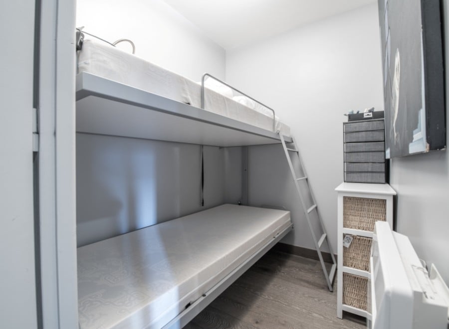 Charming 4 room apartment located in Méribel village. This beautiful corner apartment completely refurbished offers a pleasant double south and west exposure. It consists of two double bedrooms, one cabin room, two shower rooms and a nice living room with dining area and fully equipped kitchen. You will appreciate its many storage spaces and its clarity and sunshine.~ In dependency a cellar, a ski locker and a covered parking space.~ DPE: IN PROGRESS