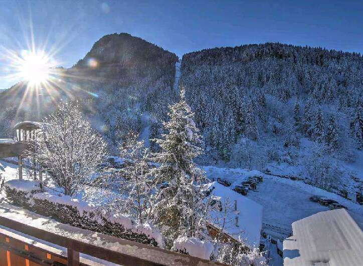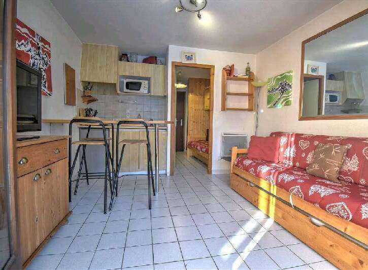 SOLD : In natural surroundings, next to Nyon cabalecar and pistes (Morzine / Les Gets area) and many paths, here is a studio on the 1st level of a popular residence. It consists of a hallway with cupboards, a bunk bed niche, a living room with a South-West facing balcony, an open plan kitchen, a shower room (wit a washing machine) and separate toilets. This property is sold with furniture, a cellar and a private car park in front of the front door.