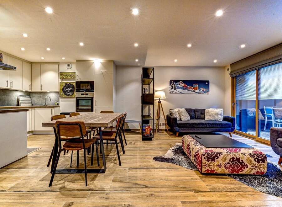 Joux Plane is a modern (2017 build) 3-bedroom, 2-bathroom ground-floor apartment in the heart of Morzine and right opposite the Pleney piste. The living area and 2 of the bedrooms open onto a large terrace, plenty big enough for outdoor dining/entertaining and a jacuzzi or sauna. The internal space is of a high quality with an open-plan living space with modern kitchen and built-in wardrobes in the bedrooms. The apartment comes with an underground parking space, a storage cave (with power) and...