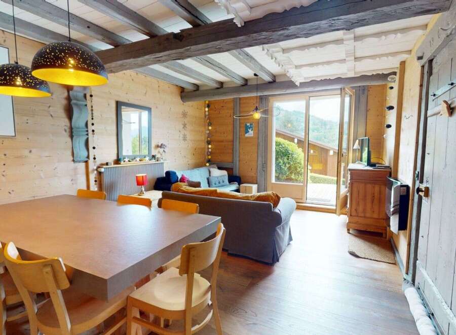 Saint-Gervais Les Bains, 5 minutes' walk from the centre, garden-level flat, tastefully renovated in 2019, offering 59.38 sq-m in the spirit of a charming Savoyard mazot, with private access and a cosy atmosphere. Lovely south-west-facing living room with open-plan kitchen, 3 bedrooms (sleeps 10), 2 shower rooms. Sunny terrace and communal garden. Swimming pool in the condominium, basement parking space. A property combining authenticity and modern comforts, perfect for holidays or a high-yield ...