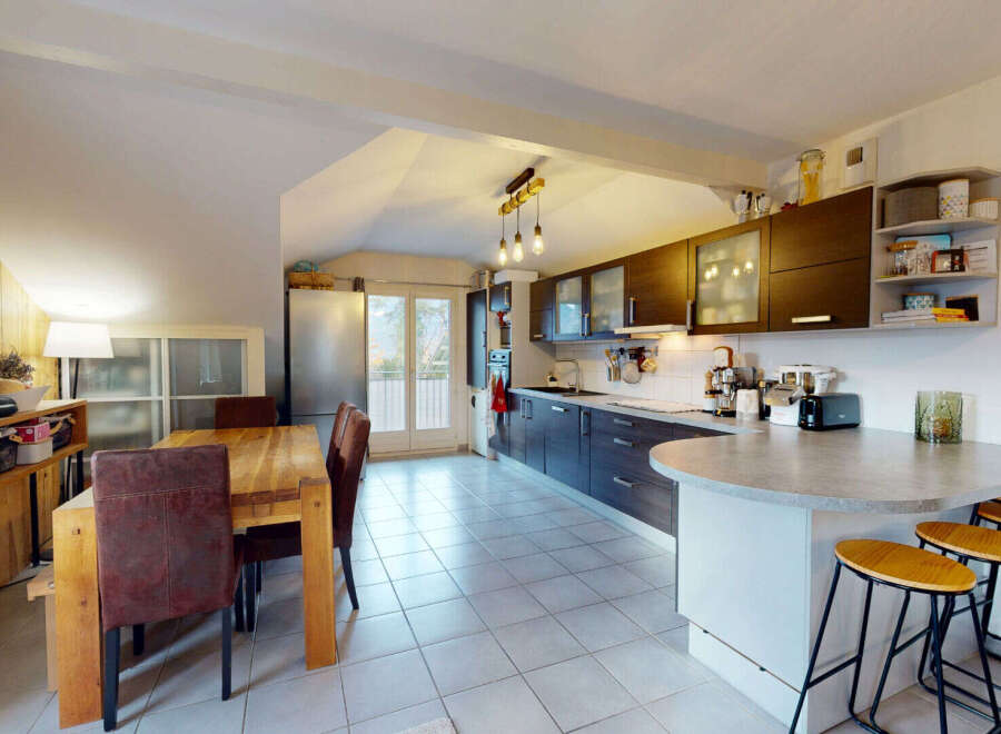 Located in the immediate vicinity of the village center, in the Mont-Blanc Tramway area, discover this beautiful 75.69 sqm (Carrez Law) apartment with a total floor area of 110.06 sqm. It comprises a fully equipped kitchen opening onto a spacious and bright living room with access to three balconies. The sleeping area includes three bedrooms, a bathroom, and a separate toilet. This top-floor apartment, occupied by only one resident, enjoys unobstructed views of the Aravis and Fiz mountain ranges...