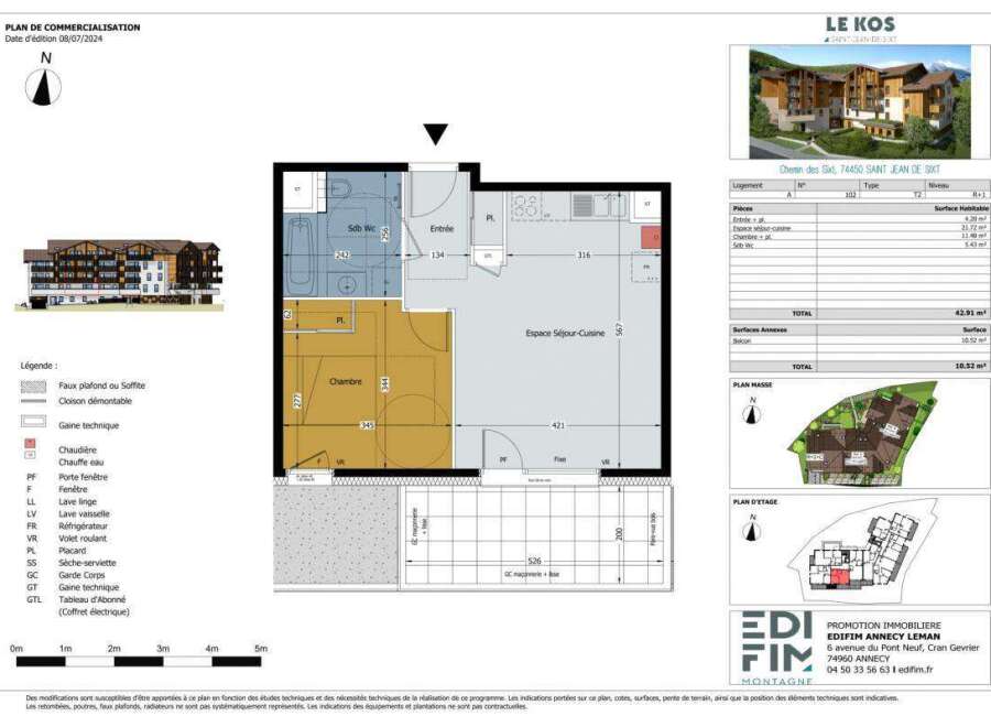 Discover this type 2 apartment in the center of Saint-Jean-de-Sixt consisting of a beautiful living space open to the kitchen as well as the south-facing terrace. 1 bedroom with cupboards, a bathroom and separate toilets. Located in a residence made up of 37 apartments combining traditional architecture and modern equipment. Possibility of additionally acquiring a cellar, a garage box or a covered parking space. Delivery planned for the end of 2026 Find us in agency: 52 route de Villavit 74450 L...