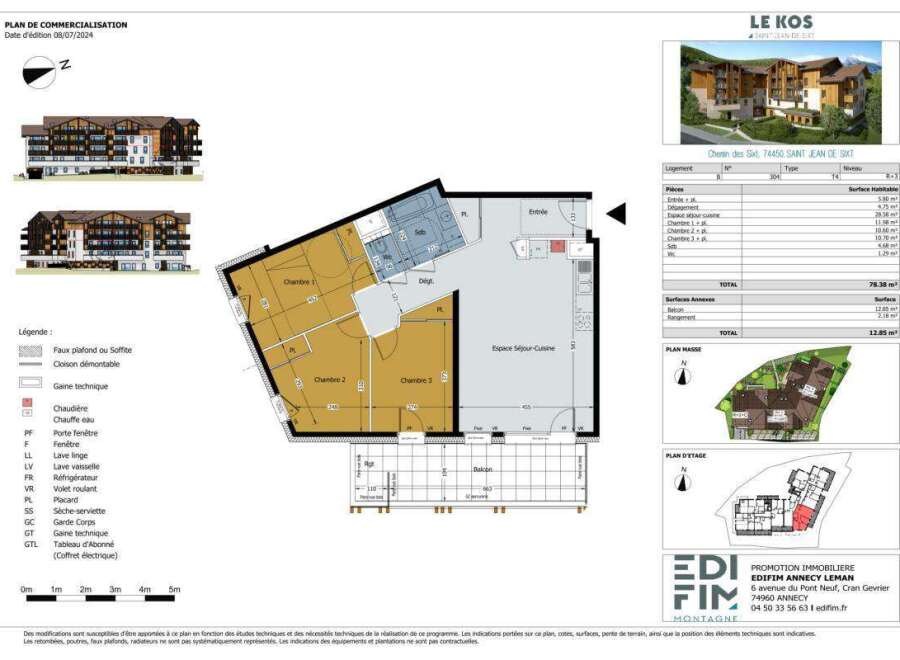 Discover this type 3 apartment in the center of Saint-Jean-de-Sixt composed of a beautiful living space open to the kitchen as well as the east-facing terrace. 2 bedrooms with cupboards, a bathroom and separate toilets. Located in a residence made up of 37 apartments combining traditional architecture and modern equipment. Possibility of additionally acquiring a cellar, a garage box or a covered parking space. Delivery planned for the end of 2026 Find us in agency: 52 route de Villavit 74450 Le ...