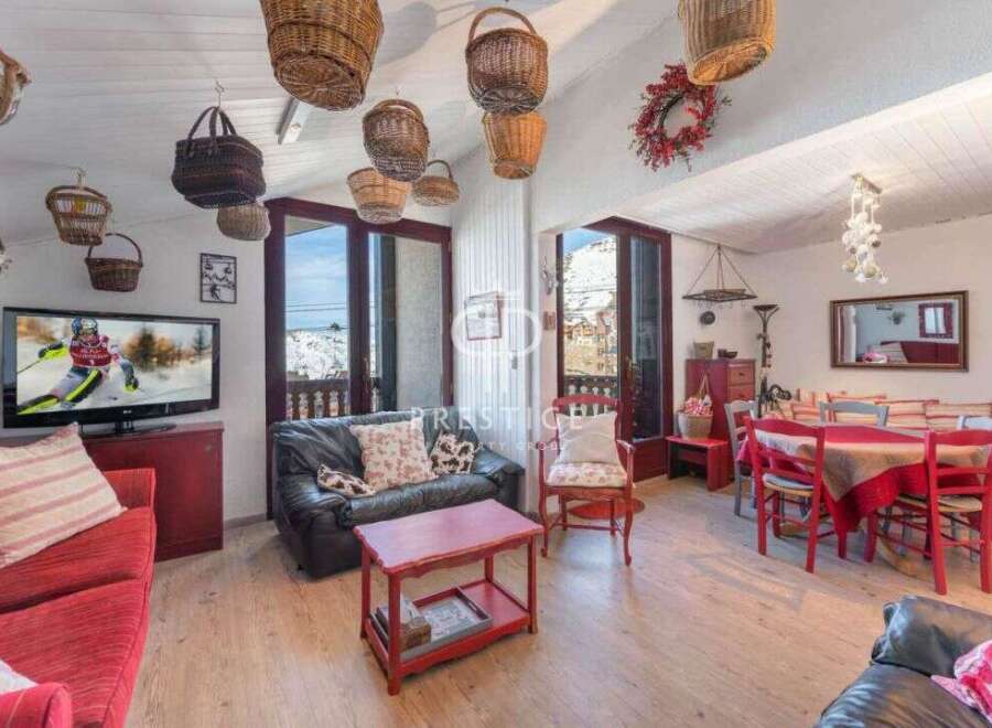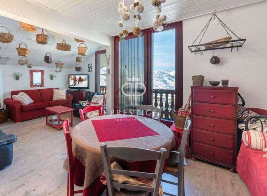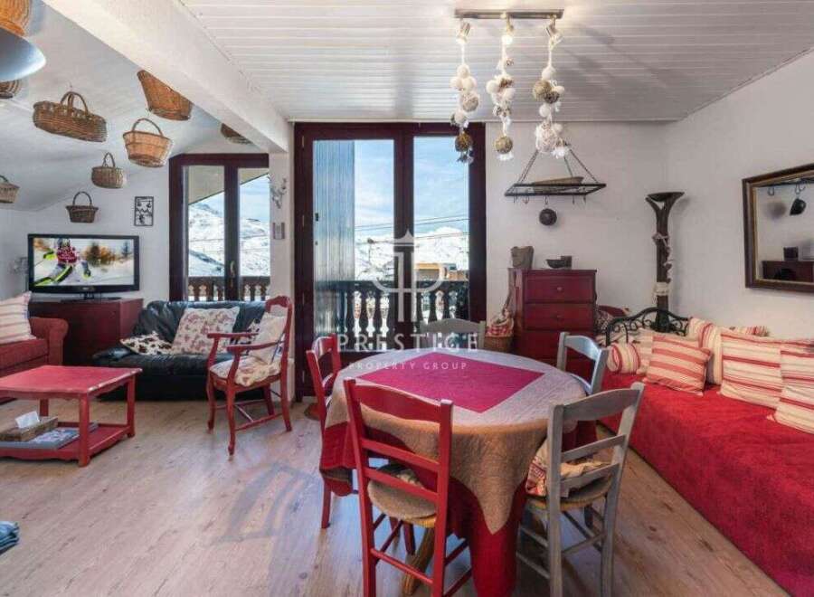 Lovely 2 bedroom mountain style penthouse apartment, which is ideally situated right in the heart of Val Thorens, with stunning views towards the surrounding peaks. With total living area of 62m2, features include: entrance hall, fitted kitchen open to the spacious and bright living/dining room with access onto a balcony with stunning views, 2 bedrooms, bathroom, shower room with a WC, guest WC, many storage areas and a total of 2 balconies. This apartment has a nice renovation potential. and is...