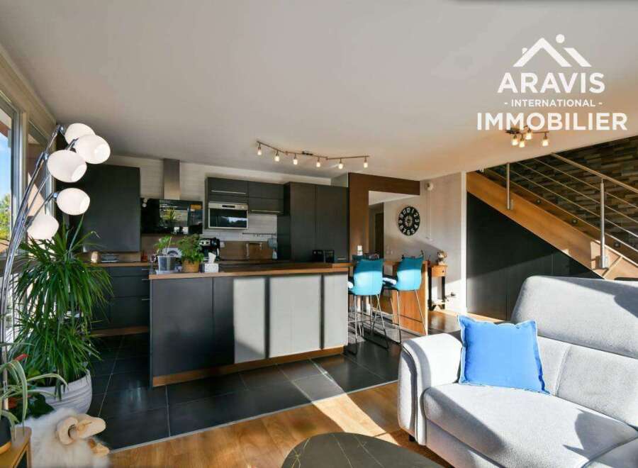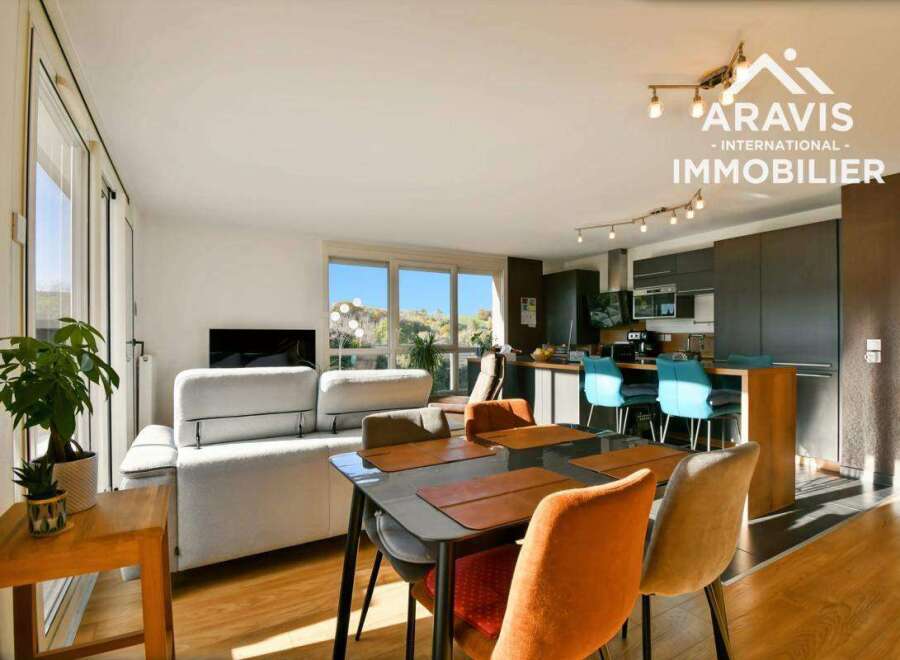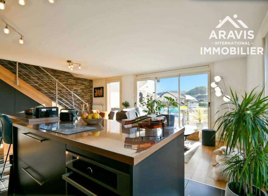 Discover exclusively with Aravis International this beautiful 4-room duplex, located in the heart of the charming village of Sillingy , in a small, recent (2017), quiet and well-maintained condominium , this magnificent apartment occupies the 1st and top floor of the building. With a generous floor area of 98.38 m2, including 82.66 m2 of living space (Carrez law), the first level comprises a spacious and bright living room facing southwest , opening onto a large terrace of over 17 m2, ideal for ...