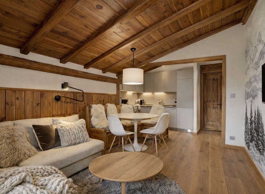 La Maison VALLAT is pleased to present this exceptionally located apartment, offering stunning views of the snow-covered peaks and direct ski-in/ski-out access from your doorstep. This dual-aspect apartment features two balconies with panoramic mountain views and is nestled within a small, exclusive residence, ensuring both peace and privacy. Once the home of the renowned KILLY family, this unique property boasts authentic Alpine character. It includes a bright living room with balcony access, ...