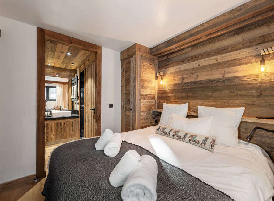 Extension project for a residence ideally located in Val d'Isère, between the forest and the resort center. Five apartments, ranging from three to five rooms, all located on the top floor, feature exposed beams, wood-burning fireplaces, and are designed in a distinctly Alpine style by renowned local architects. This inviting 94.38 sqm apartment offers a master bedroom, a double bedroom with en-suite facilities, and a bedroom with a bunk bed alcove. Its spacious living area boasts unobstructed vi...