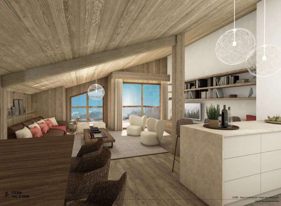 Come and discover this beautiful duplex with 4 rooms+ mountain corner in this intimate residence with 23 upmarket flats from 2 to 6 rooms. Inspired by the Savoyard building tradition, the architecture is enhanced by noble and authentic materials, giving it a personality full of character: stone base, larch cladding, slate roof.