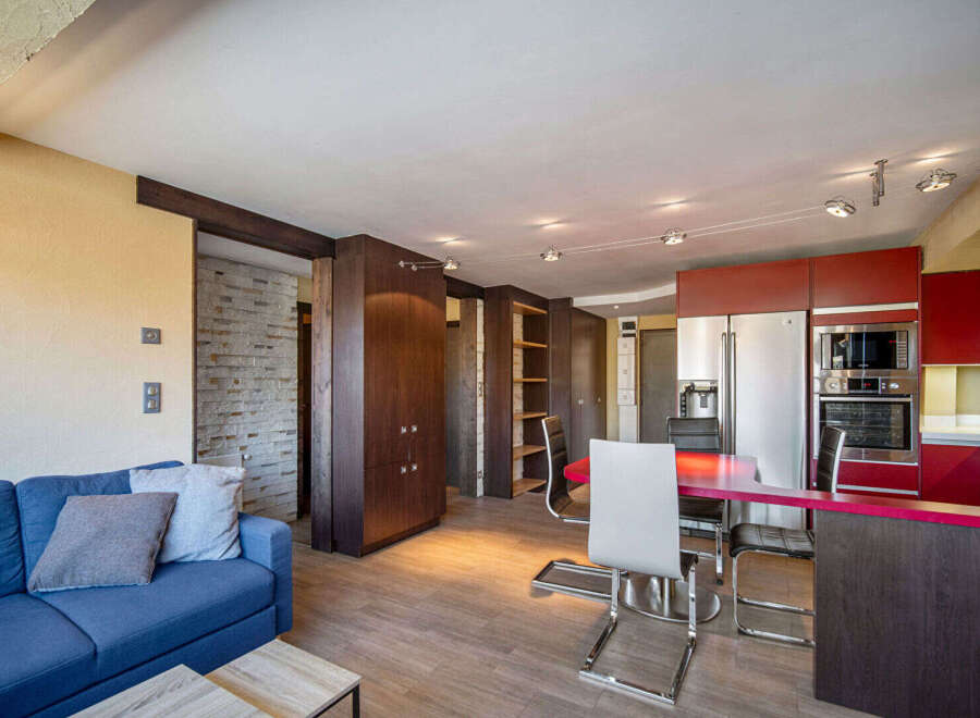 Rare, large apartment with a surface area of approximately 87m2 (69.24m2 according to the Carrez law), offering beautiful amenities, facing Southwest with a magnificent view. Composed of an entrance hall with plenty of storage, a cabin bedroom with 4 bunk beds, a large living room with open kitchen, a master bedroom with a large bathroom and dressing room, a cabin bedroom with a double bed, a shower room, a separate toilet, as well as a relaxation area with massage chair and hammam. It is sold f...
