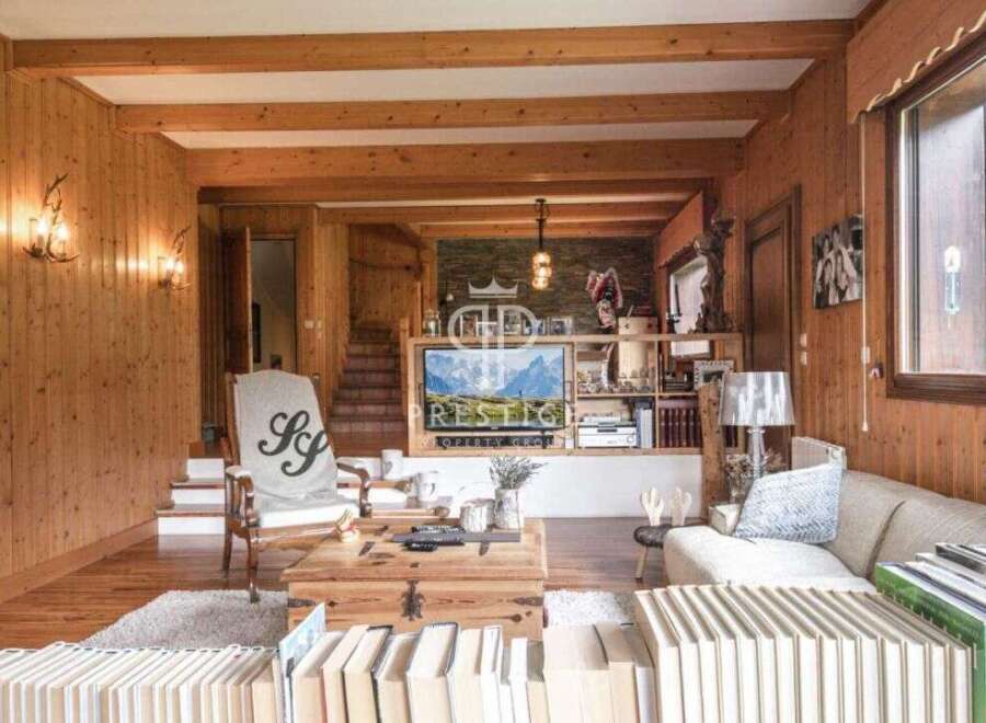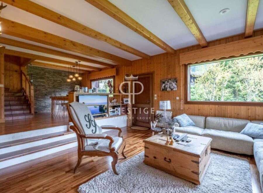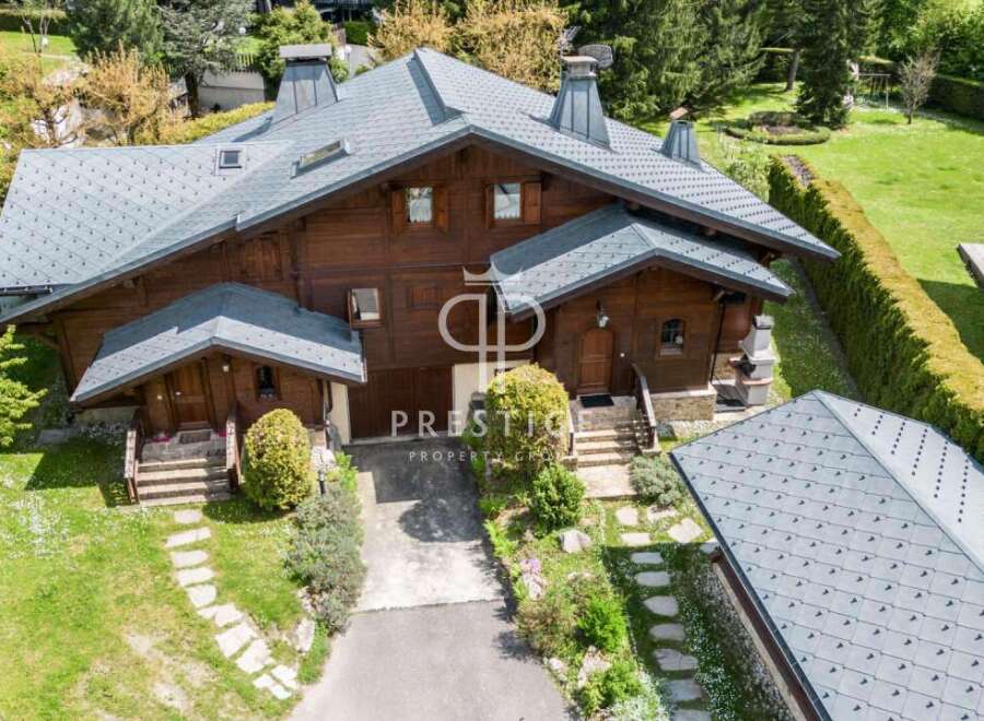 Superb 5 bedroom ski chalet, situated in a quiet and sunny area of Chamonix.This semi-detached chalet offers a beautiful open-plan living space on a flat south facing plot of 1,100m2. With a living area of around 160m2, features include a spacious living room with an open kitchen, 4 double bedrooms, bathroom, shower room and a large basement with a garage. Located right next to the tennis courts and the town centre is just a few minutes walk away.