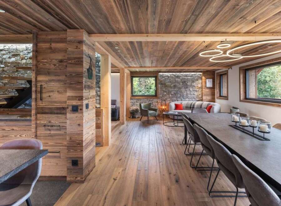 Discover this magnificent new chalet with top-of-the-range features and meticulous finishes. With a total surface area of approx. 216 sq.m, including approx. 180 sq.m of living space, the chalet is built on three levels and includes 5 bedrooms, 3 of which are en-suite. The bright living room features a lounge, dining room and fully-equipped open-plan kitchen opening onto a sunny 12 sq.m balcony-terrace for convivial moments with family and friends. Designed with noble materials such as old wood ...