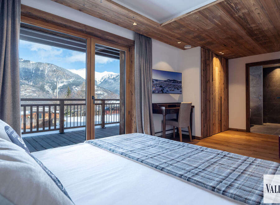 This chalet, reputed to be one of the best in Le Praz, invites you to discover an art of living that combines refinement and serenity. Its 5 en-suite bedrooms, including a sumptuous master suite and a kid's bedroom for your children's enjoyment, guarantee optimum comfort for each of your guests. With a capacity of up to 12 people, this property combines practicality and sophistication, ideal for unforgettable moments with family or friends. The majestic living room, a true centerpiece, seduces...