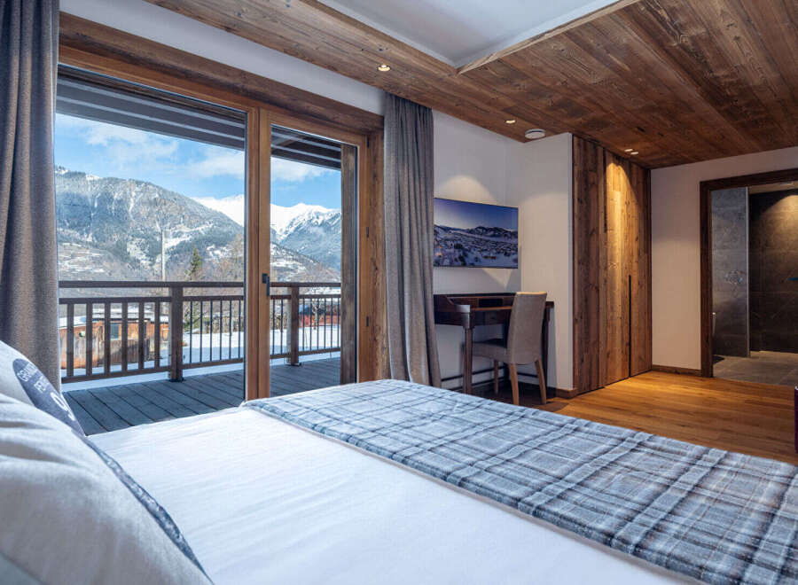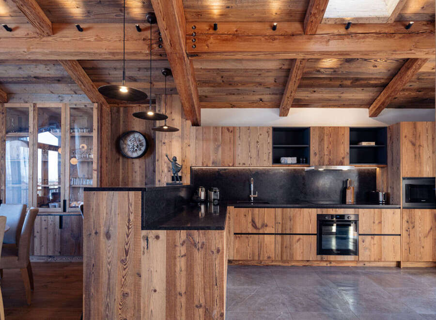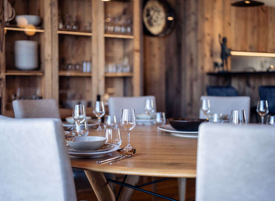 #Cathedral volumes, open views# In Courchevel Le Praz, this chalet ranks among the village's standout properties, with a clear layout and a strong presence of the surrounding landscape on every level. The living area is organised around a double-height lounge beneath the exposed roof structure, where the height and generous proportions amplify the sense of space. Wide south-facing openings bring in constant natural light and frame the surrounding contours. The open kitchen, seamlessly integrate...
