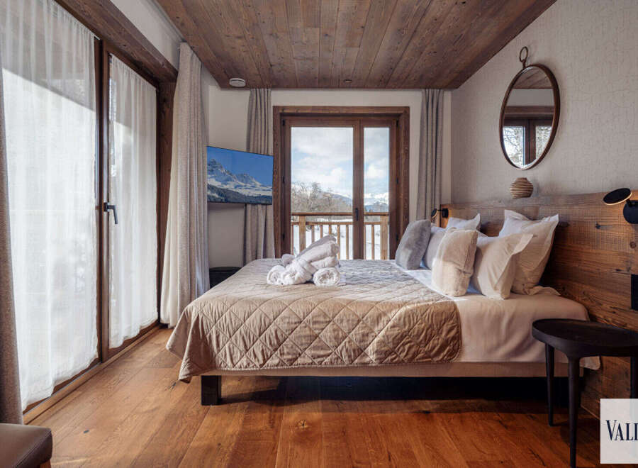 This exceptional chalet in Courchevel Le Praz combines luxury and authenticity. The living room, bathed in light thanks to its south-facing bay windows, opens onto spacious terraces with breathtaking views of the mountains. With 5 en-suite bedrooms, including a master bedroom and a children's bedroom, this chalet can accommodate up to 12 people in an elegant setting. The wellness area, including a swimming corridor, a sauna and a private cinema room, offers relaxation and entertainment. The chal...