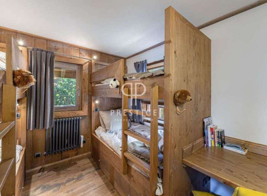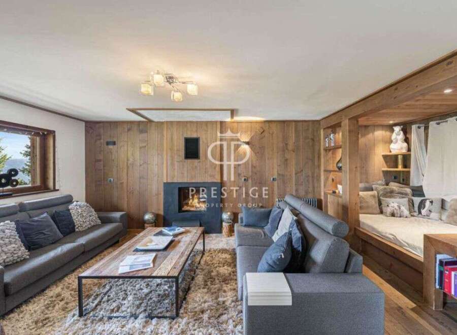 Enjoying wonderful mountain views from its ideal location near the slopes and all amenities in La Tania, is this exceptional 4 storey, 6 bedroom authentic chalet.This luxurious property offers spacious accommodation, with a fully equipped kitchen opening onto the living and dining room with fireplace. There are five double bedrooms and a children's bedroom, so is able to accommodate ten adults and four children in optimum comfort. It also features 2 covered parking spaces, two enclosed garages, ...