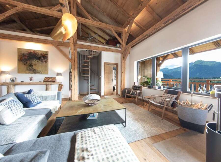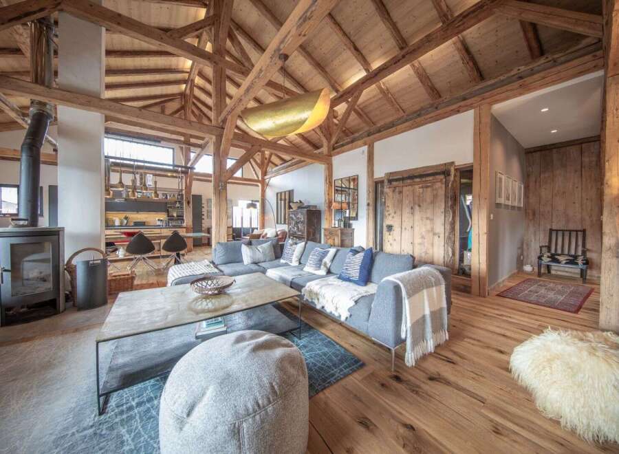 This magnificent chalet, located in the heart of the alpine village of La Côte d'Arbroz, just minutes from Morzine, offers stunning mountain views from its south-facing balconies and living areas. Renovated from a traditional Savoyard barn, it comprises five en-suite bedrooms, three of which have separate sitting rooms and terraces. The main living room, with its exposed beams and double-height ceiling, features an open-plan kitchen, a wood-burning stove, and a sunny balcony-terrace. This level ...