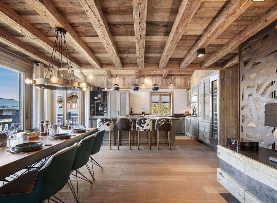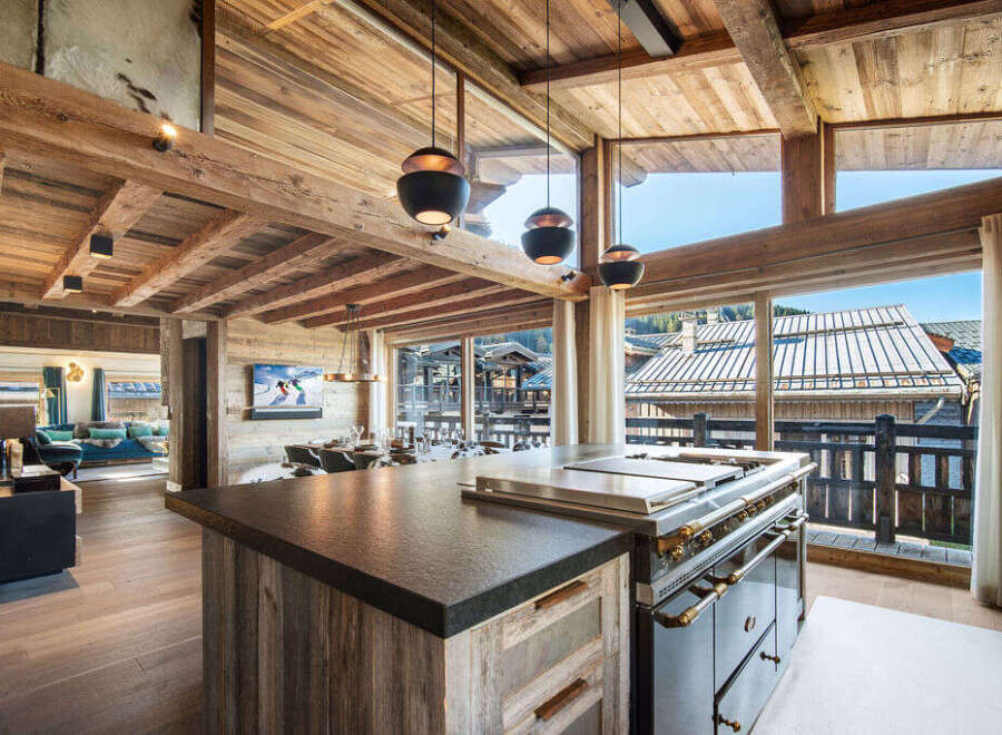 This chic and cosy chalet is the ideal place for a family holiday in Courchevel Le Praz. Close to the slopes and shops, it combines elegance, comfort and a cosy atmosphere. Its refined architecture blends noble materials and tasteful decoration. The spacious and bright living area is organised around a large central fireplace, perfect for cosy evenings. On the wellness side, a jacuzzi, sauna and hammam await you for moments of relaxation after skiing. The chalet has three double bedrooms with en...