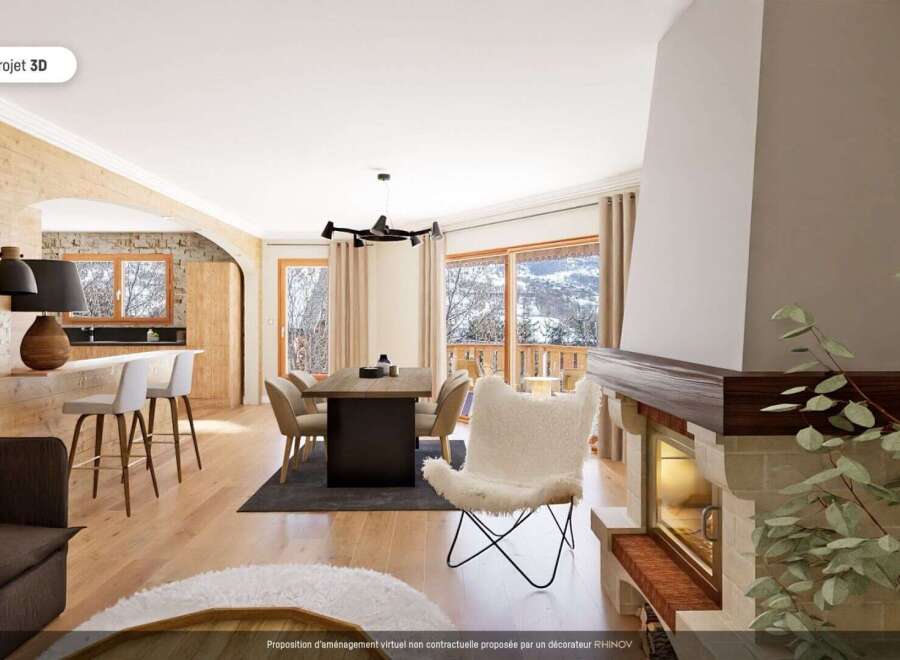 Immerse yourself in the warm atmosphere of this beautiful 175 sq.m family chalet, nestled in the heart of the authentic village of Saint-Marcel, just 5 minutes by car from the ski lifts. You will be seduced by its generous spaces and its clever layout. Upon entering, discover an office which you can transform into a bedroom, several bathrooms and three double bedrooms, each more inviting than the last. The equipped kitchen, open to a convivial dining room, and the living room with a fireplace of...