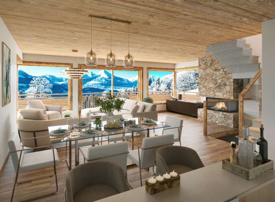 In a wonderful position just 3 minutes walk from the Mont Chery ski lift and the centre of the dual season resort of Les Gets within the Portes du Soleil ski domain, this brand new ski in and out project (400m off piste to arrive and depart) will comprise 5 chalets offering 3 and 4 bedrooms. The 4 bedroom 149 - 166m2 chalets built in a modern style with a South East aspect will be split over 3 floors.The chalet comprises:Ground floorIndependant bedroomShower room with separate toiletPossibility ...