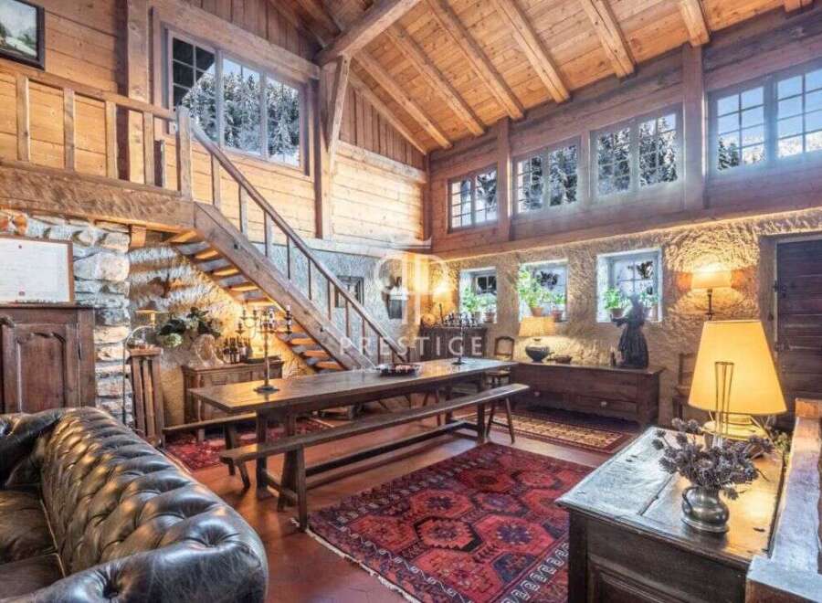 Superb totally refurbished 6 bedroom ski chalet, which is ideally situated in an elevated setting in a quiet area of Les Houches, close to the ski slopes and with stunning panoramic views of the Mont Blanc massif.This historic property has been renovated in the pure respect of the local architecture and has a total living area of 335m2 which has retained its historical assets, as well as a splendid mazot, both built on a plot of approximately 2,160m2. With high cathedral ceilings, features inclu...