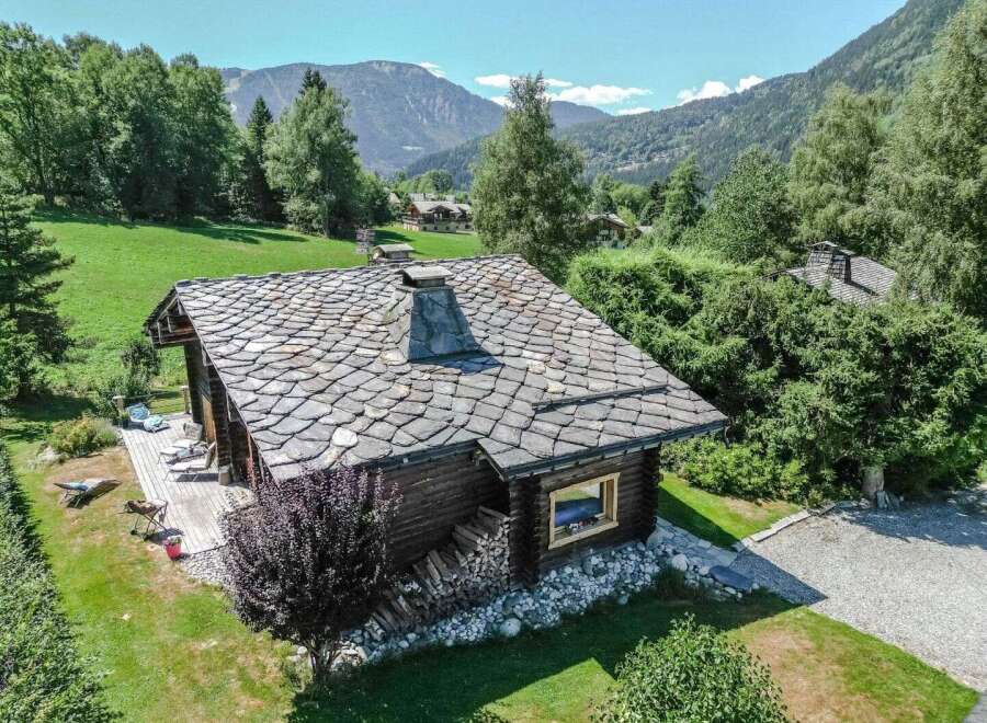 In a rural environment, this chalet, signed by the architect Mazza, offers beautiful volumes and the charm of a log construction. The chalet is located at the end of a dead end street, facing a field and a clear view on the mountains. It is located between Les Houches and Chamonix center. The chalet of about 200 sq.m of useful surface built on a plot of 1220 sq.m is distributed on three levels. On the main floor, there is a kitchen with bar, a large living room with chimney overlooking the south...