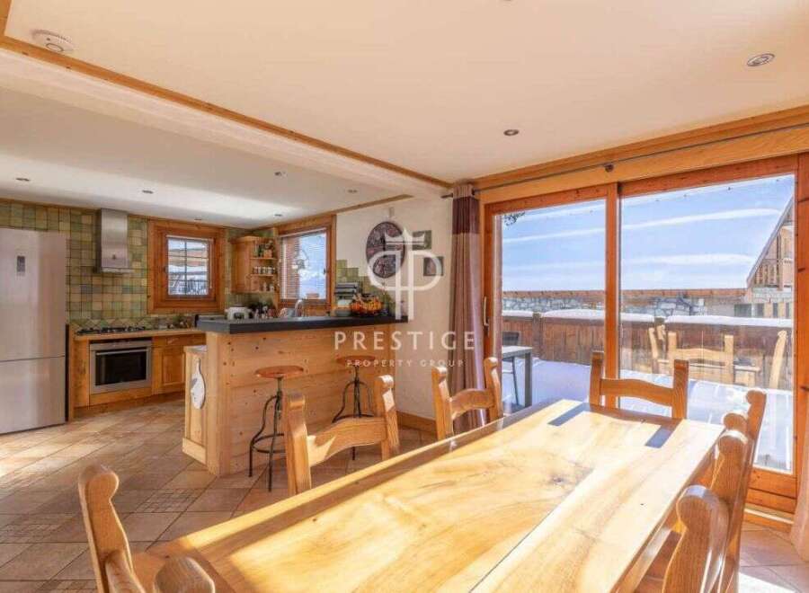 A bright and beautifully presented 3 bedroom chalet in Meribel, set in a generous plot with the rare possibility of further development .The traditional style property comes with living space of 122m2 and is located on a large wooded plot of 1,200m2. It includes a living room with wood stove and open kitchen, 3 bedrooms and 3 bathrooms. In addition, there is an office and laundry room. Large garage. Possibility of fitting out 2 other bedrooms on the ground floor or extending the existing one.