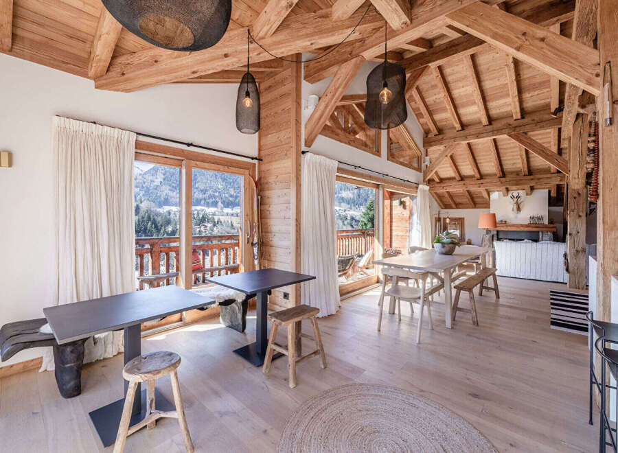 Discover this magnificent, authentic 350 sqm chalet, built in 2018 with high-quality materials, where every detail has been carefully considered to create a warm and refined atmosphere. Ideally located on the sunny heights of Montriond, a village renowned for its quality of life, it is just 3 km from Morzine, 6 minutes from the Ardent gondola lift, and 80 meters from a ski shuttle stop, offering privileged access to the Portes du Soleil ski area. This chalet enjoys exceptional panoramic views of...