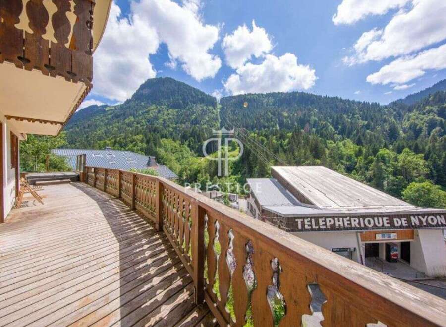 Superb 7 bedroom skit chalet, which is beautifully nestled just above the Nyon ski lift, just 1.5km from the centre of Morzine, with the free ski bus stopping at the foot of the chalet.With its own private stairs that lead to the doors to the lift building and it is possible to ski back to within 150m from the top of the mountain at around 2,000m in altitude down to the chalet at around 1,000m. This area is also fantastic in summer with the impressive Nyon waterfall, mountain biking tracks and e...
