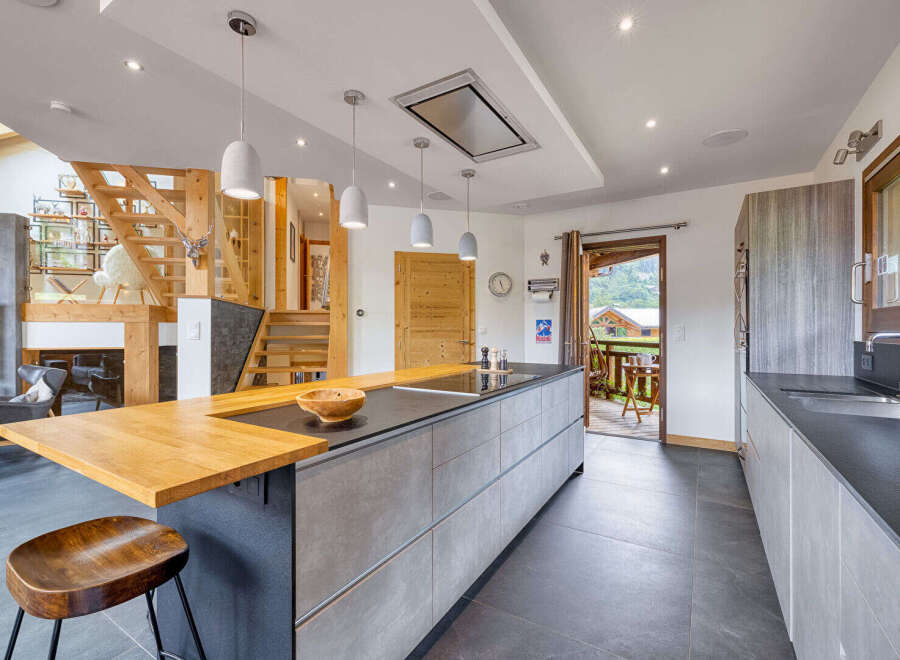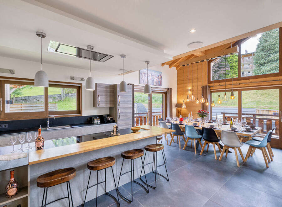 Discover this superb 300 m2 chalet, built in 2017 by renowned local craftsmen. It harmoniously combines the charm of wood and stone, offering an authentic and refined setting. Ideally located just 15 minutes' walk from the village centre and 50 metres from a ski bus stop, it offers easy access to the Portes du Soleil ski area. The layout of this chalet has been carefully thought out to maximise space and natural light, creating a warm and friendly atmosphere. The contemporary kitchen, with a cen...