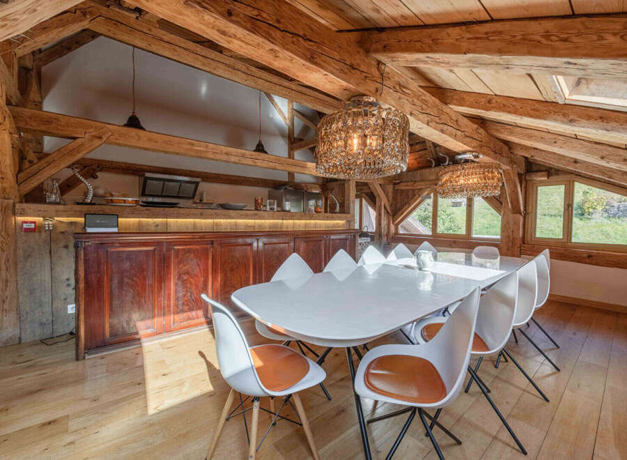 Located just a 5-minute walk from the village center and the Super-Morzine ski lift, this magnificent renovated semi-detached farmhouse combines authenticity with modern comfort. The carefully preserved period features blend harmoniously with high-end amenities to create a unique and welcoming space. Offering generous living areas, it is ideal for large families or groups of friends. The ground floor comprises a double vestibule with a ski room, a spacious entrance hall, a self-contained two-roo...