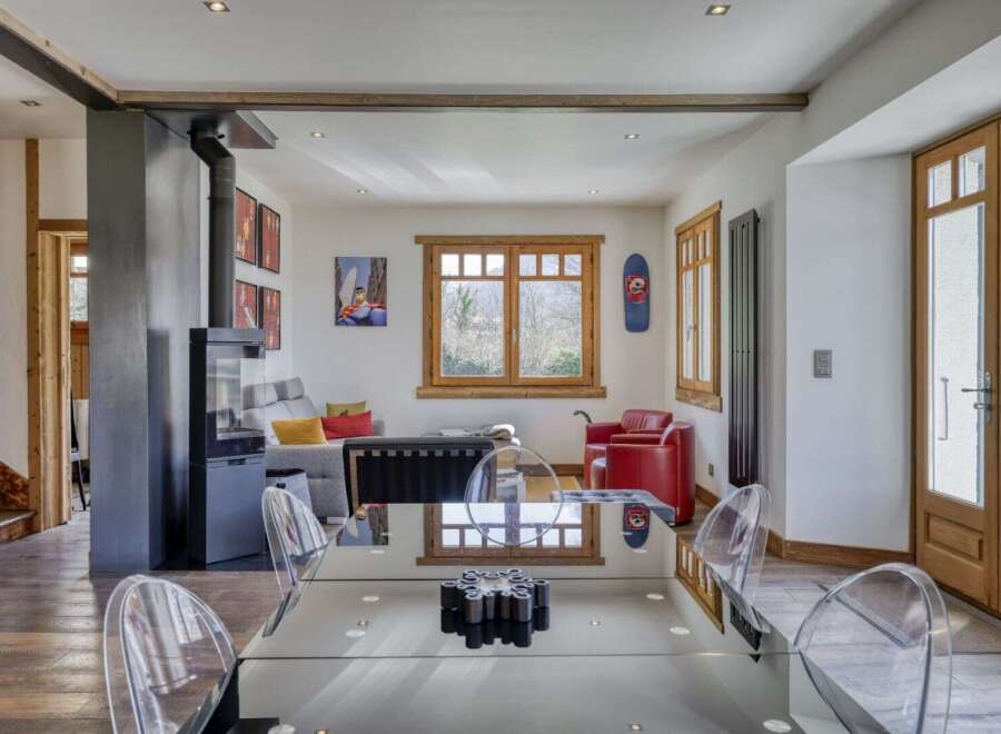 Located less than 5 minutes' walk from the center, this recently renovated 50's chalet offers around 150 sq-m of living space, making a total of 180 sq-m. It benefits from an exceptional living environment, combining peace and quiet with immediate proximity to shops and amenities. The chalet has 4 bedrooms, two shower rooms with toilets and a large lounge-games area. The interior has been recently renovated using quality materials, creating a warm, modern atmosphere; The bright living room opens...