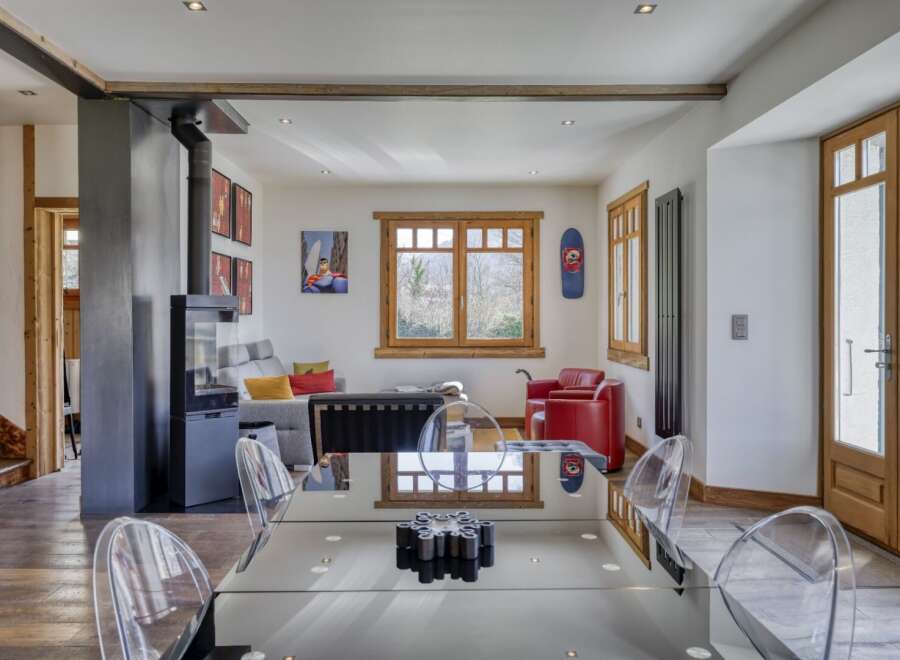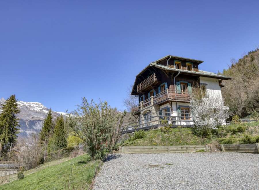 Located less than five minutes on foot from the village centre, this beautifully renovated 1950s chalet enjoys a dominant position, south-facing brightness, and completely unobstructed mountain views, all set on a generous plot of land. Offering approximately 150 sq.m of living space (180 sq.m total), the property is perfectly designed for peaceful year-round living or as an elegant second home close to shops, amenities, and outdoor activities. With four bedrooms, two shower rooms with toilets, ...